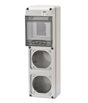IP65 védelemmel rendelkező elosztótáblák teljes rendszere a szolgáltató, kereskedelmi és építési szektorok energiaelosztási feladataihoz, amelyek az IEC 61439 szabvánnyal összhangban mind összeszerelt, mind pedig üres, vezetékezés nélküli változatokban is megrendelhetőek. Változatai 5-20 DIN modulos kivitelekben kaphatóak. A DIN modul férőhelyek számának bővítésére készülnek további 14 vagy 20 DIN modul elhelyezésére is alkalmas bővítő szekrények. Alkalmasak süllyesztett csatlakozó-aljzatok és reteszelt csatlakozó-aljzatok beszerelésére 63A-ig, és számos kiegészítővel kombinálhatóak.