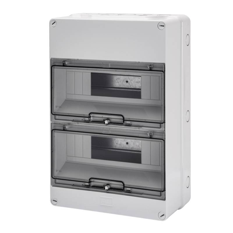 Kiselosztó műanyag 2x 12M falonkívüli szürke IP55 átlátszó kivágott fedél 40CD GEWISS
